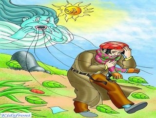 O vento e o sol estavam disputando qual dos dois era o mais forte. De repente, viram um viajante que vinha caminhando. - Sei como decidir nosso caso. Aquele que conseguir fazer o viajante tirar o casaco, será o mais forte. Você começa!- propôs o sol, retirando-se para trás de uma nuvem. O vento começou a soprar com toda a força. Quanto mais soprava, mais o homem ajustava o casaco ao corpo. Desesperado, então o vento retirou-se.